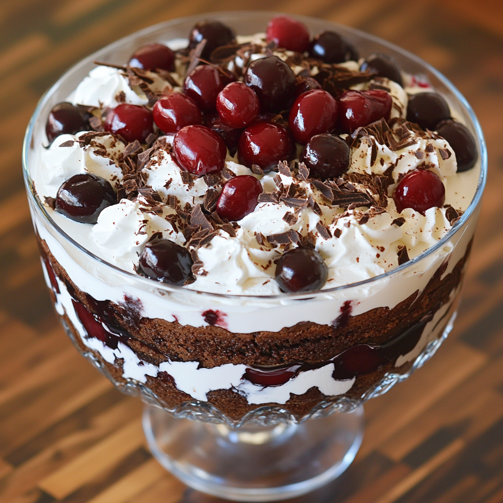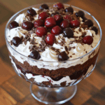Black Forest Trifle for Christmas is a delightful dessert that combines layers of rich chocolate cake, luscious vanilla pudding, and juicy cherries. This no-bake treat is perfect for holiday celebrations, family gatherings, or any special occasion. Its impressive presentation and indulgent flavors will surely impress your guests, making it a must-try this festive season!