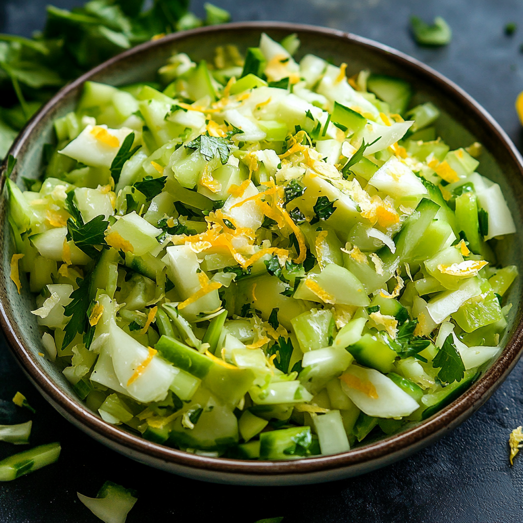 Experience a burst of freshness with this Celery Salad with Lemon Zest! This light and vibrant dish is perfect for any occasion, whether you’re hosting a summer barbecue or enjoying a cozy dinner at home. The crisp texture of fresh celery combined with the tangy brightness of lemon zest creates a delightful flavor profile that enhances any meal. Quick to prepare in just 10 minutes, this salad makes for an ideal last-minute side dish that not only complements grilled meats and sandwiches but also stands out on its own as a refreshing snack.