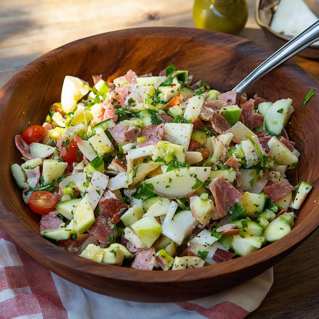 This vibrant Chopped Antipasto Salad is a delightful mix of fresh ingredients, making it perfect for any gathering. With crisp romaine, juicy cherry tomatoes, savory turkey slices, and rich cheeses all dressed in a tangy Parmesan vinaigrette, this salad brings both flavor and color to your table. Whether you’re hosting a party or looking for a satisfying lunch, this recipe is sure to impress!