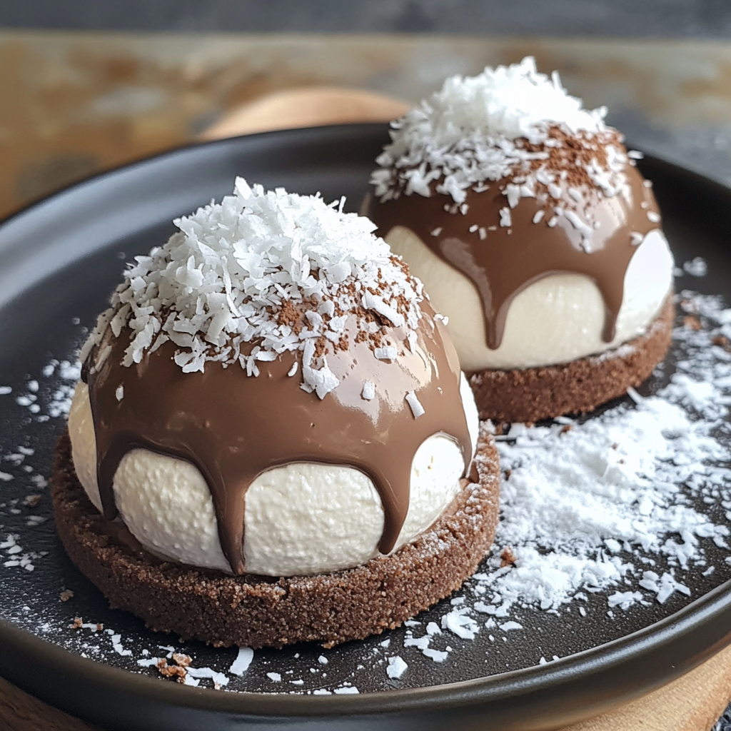 Coconut Dome with Chocolate Spread is an exquisite dessert that marries rich flavors with a stunning presentation, making it the perfect treat for any occasion. This delightful dish features layers of creamy coconut mousse encased in a crunchy cocoa shortbread base, all topped with a luscious gooey chocolate spread.