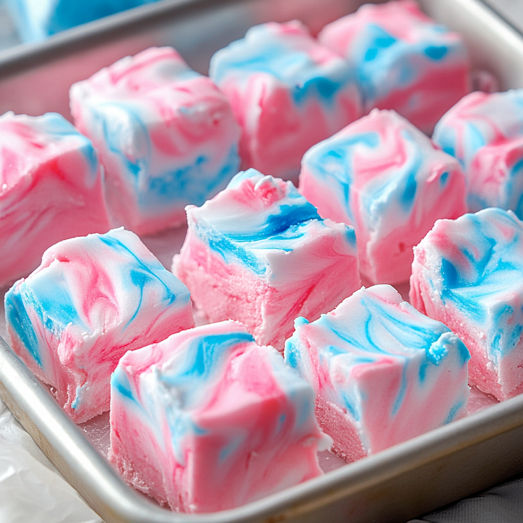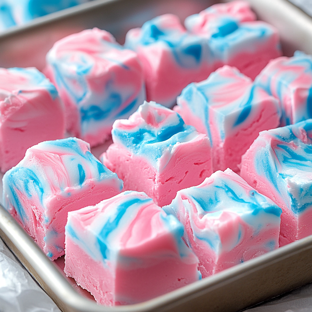 Fluffy Cotton Candy Fudge is a delightful treat that brings nostalgia to any gathering. With its colorful swirls of blue and pink, this fudge is not only visually appealing but also bursting with sweet cotton candy flavor. Perfect for birthday parties, baby showers, or just a fun family dessert, this fudge is sure to impress your guests with its unique taste and captivating appearance.