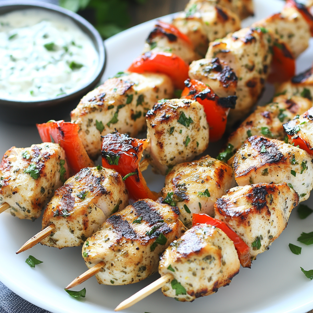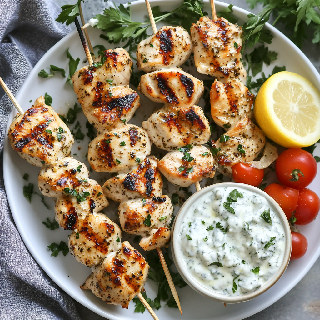 Greek Lemon Chicken Skewers with Tzatziki Sauce