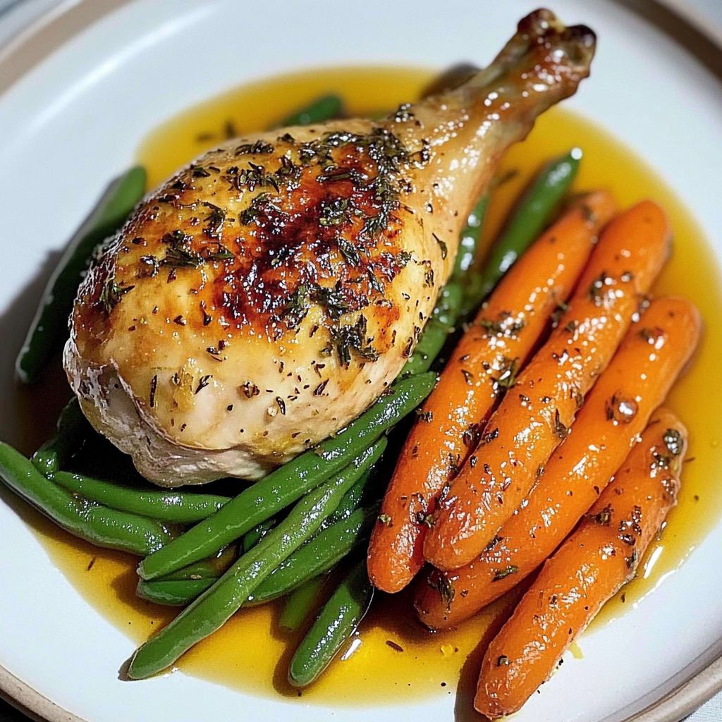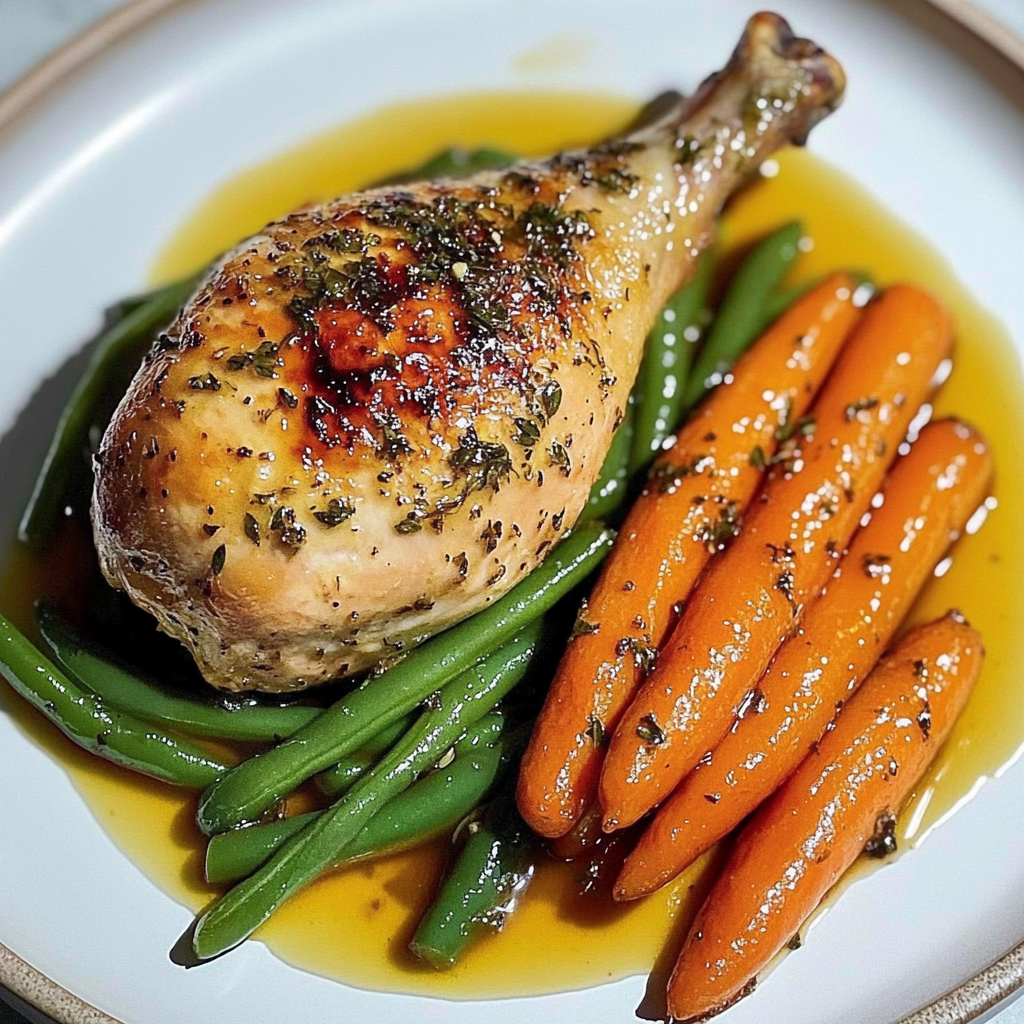 Herb Roasted Chicken with Garlic Green Beans & Glazed Carrots is a delightful and nutritious meal that brings together succulent chicken, vibrant green beans, and sweet glazed carrots. This one-pan dinner is perfect for busy weeknights or special occasions, offering an impressive presentation with minimal effort. The chicken is seasoned with aromatic herbs and garlic, while the vegetables are cooked to tender perfection. Enjoy a well-rounded dish that is not only delicious but also packed with healthy ingredients that everyone will love.