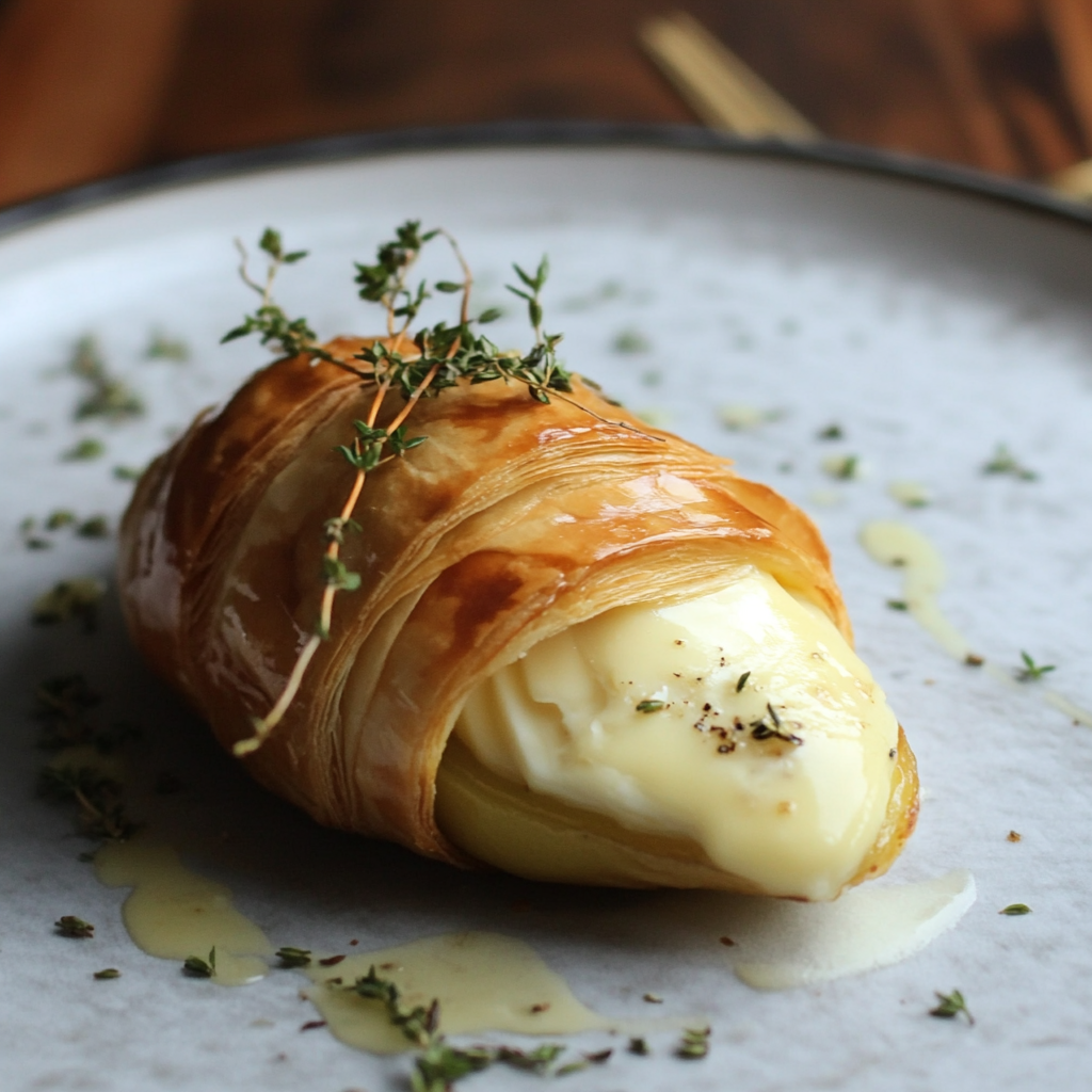 Golden, glossy, and filled with surprise, the Poached Pear Wrapped in Brie, Baked in Puff Pastry is a show-stopping dish perfect for any gathering. This elegant centerpiece features a spiced apple vinegar pear nestled inside creamy brie and encased in flaky pastry. Ideal for festive occasions or as an impressive appetizer, this recipe combines sophistication with delightful flavors that will leave your guests wanting more.