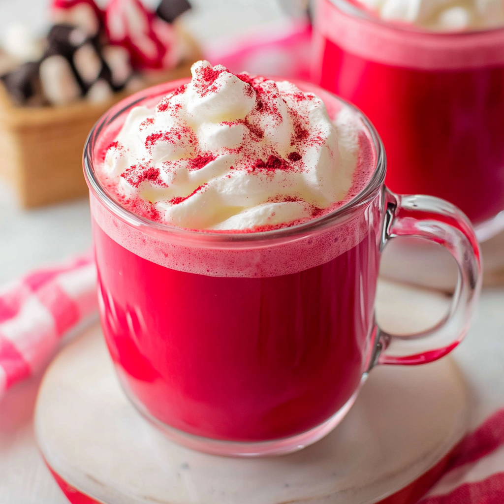 Red Velvet Hot Chocolate is a rich and creamy beverage that combines white chocolate with red food coloring to give it that signature red velvet look.