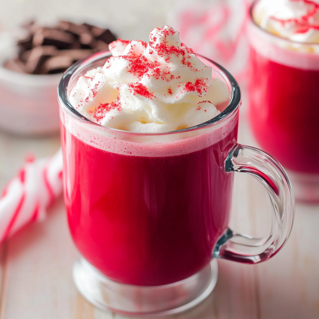 Indulge in a luxurious Red Velvet Hot Chocolate Recipe that transforms your cozy evenings into delightful experiences. This vibrant drink combines the sweetness of white chocolate with a rich, creamy texture and a stunning red hue, making it a perfect treat for festive gatherings or a romantic night in. Easy to prepare in just 10 minutes, this hot cocoa will surely impress your guests while satisfying your sweet cravings. Customize it with toppings like whipped cream, mini vegan marshmallows, or crushed peppermint to elevate your sipping experience.