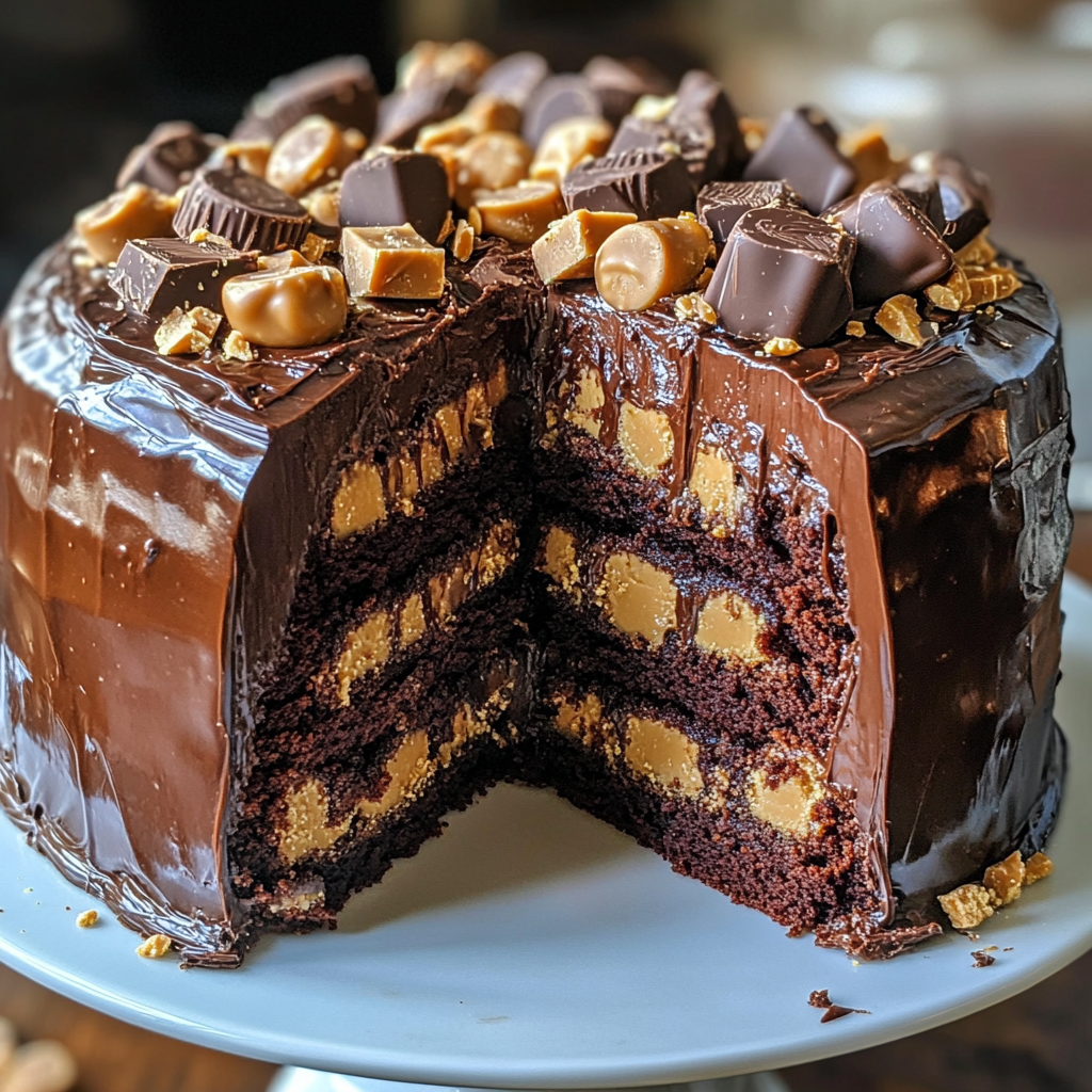 Reese’s Chocolate Peanut Butter Cup Earthquake Cake
