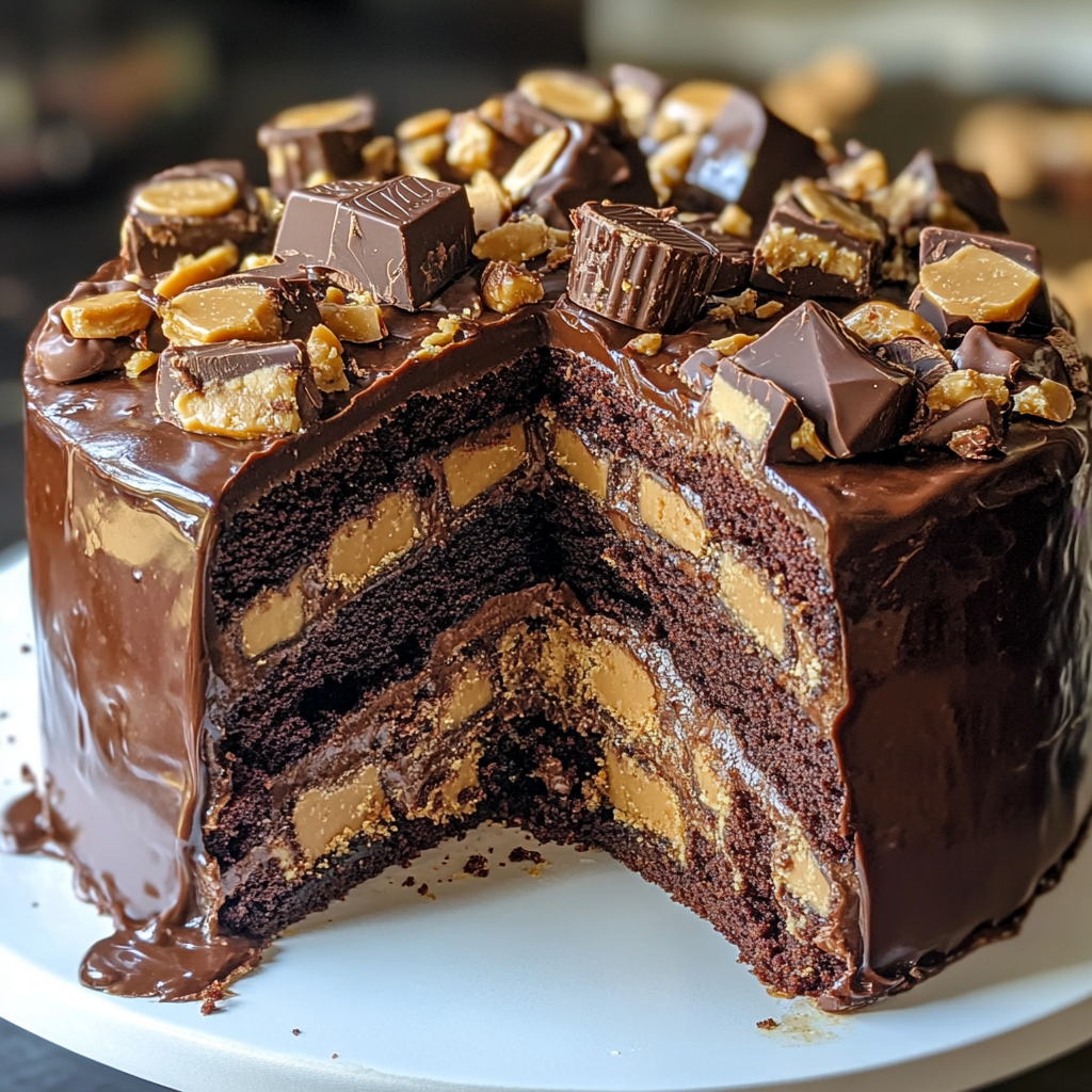 Indulge in the decadent delight of this Reese’s Chocolate Peanut Butter Cup Earthquake Cake, a dessert that’s guaranteed to impress at any gathering. This rich cake features layers of moist dark chocolate and creamy peanut butter frosting, studded with chunks of chocolate-covered peanut butter cups for an irresistible treat. Whether you’re celebrating a special occasion or simply satisfying your sweet tooth, this easy-to-make cake offers a perfect blend of flavors that will leave everyone craving more. Serve it warm with a scoop of vanilla ice cream for an unforgettable experience!