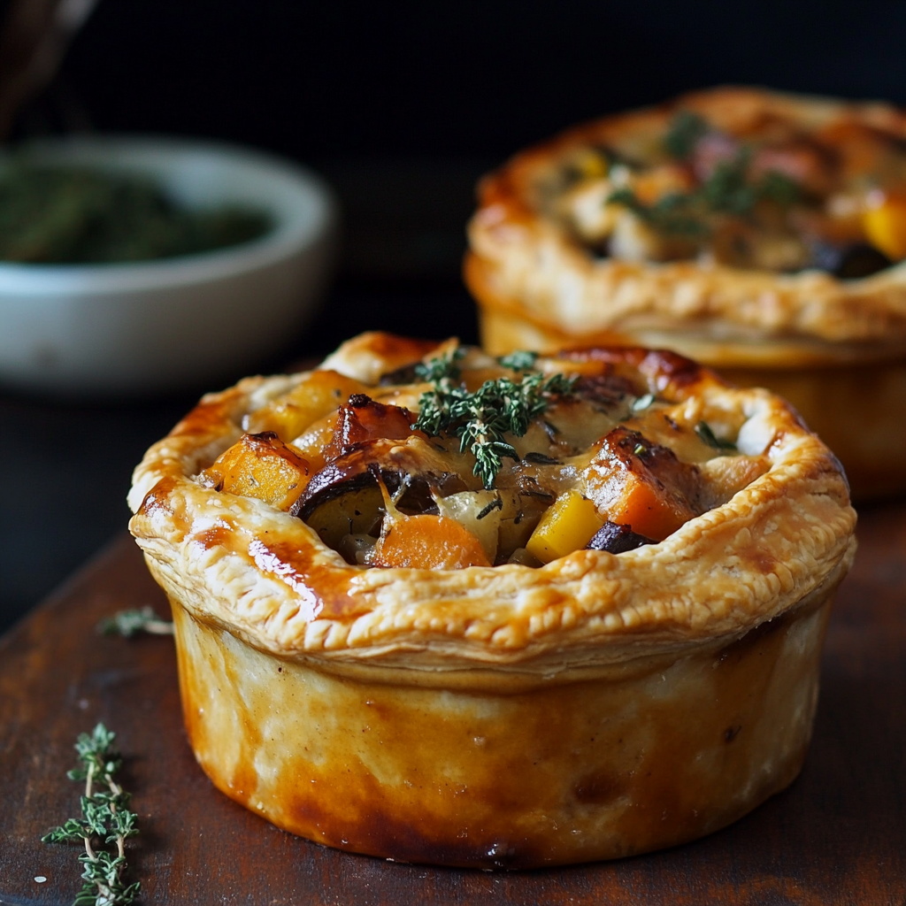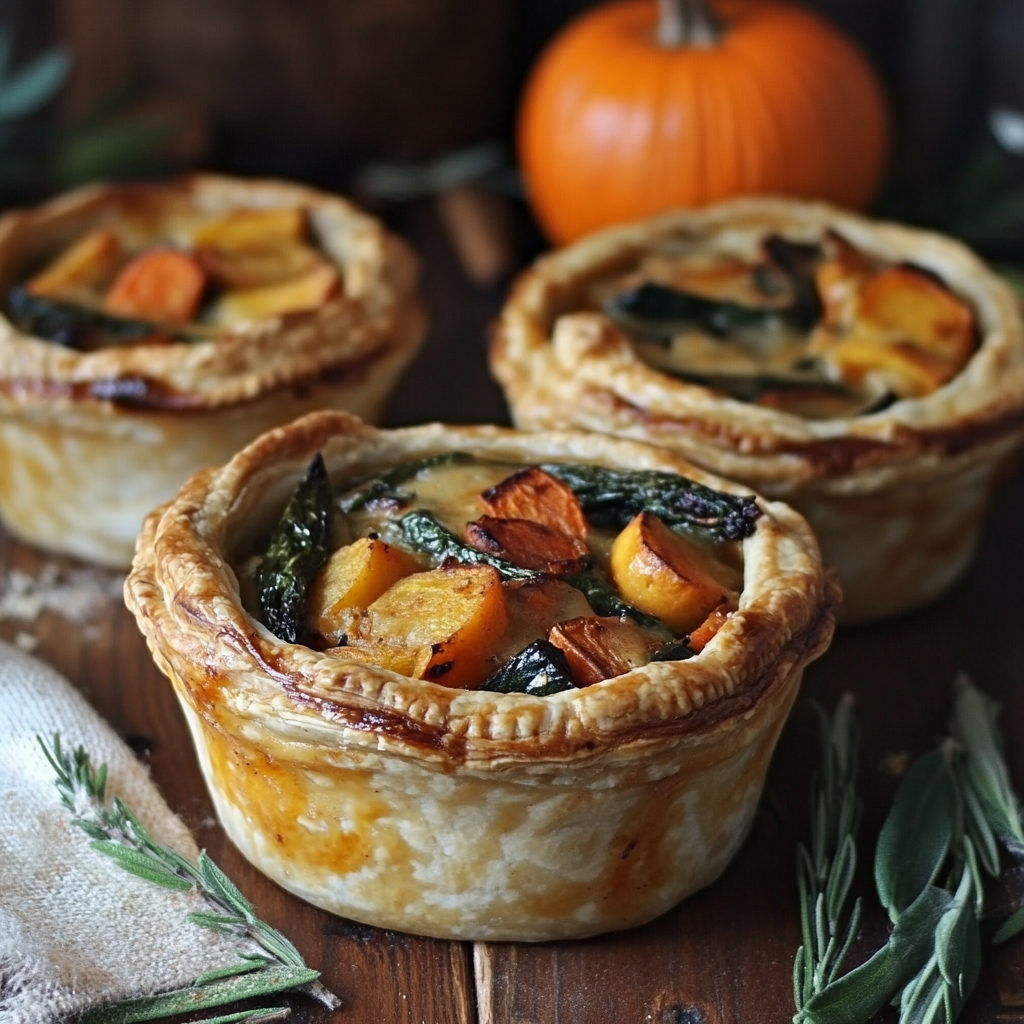 Roasted Autumn Vegetable Pot Pies are savory pastries filled with seasonal roasted vegetables, encased in flaky puff pastry. They make a perfect comfort food.