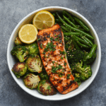 A Spiced Salmon Bowl with Roasted Brussels, Sautéed Greens & Steamed Broccoli is not just a meal; it’s an experience. This dish highlights the deliciousness of perfectly spiced salmon paired with crispy roasted Brussels sprouts, garlicky green beans, and tender steamed broccoli. Ideal for any occasion, whether it’s a quick weeknight dinner or a special gathering, this bowl stands out for its vibrant flavors and nutrient-rich ingredients.