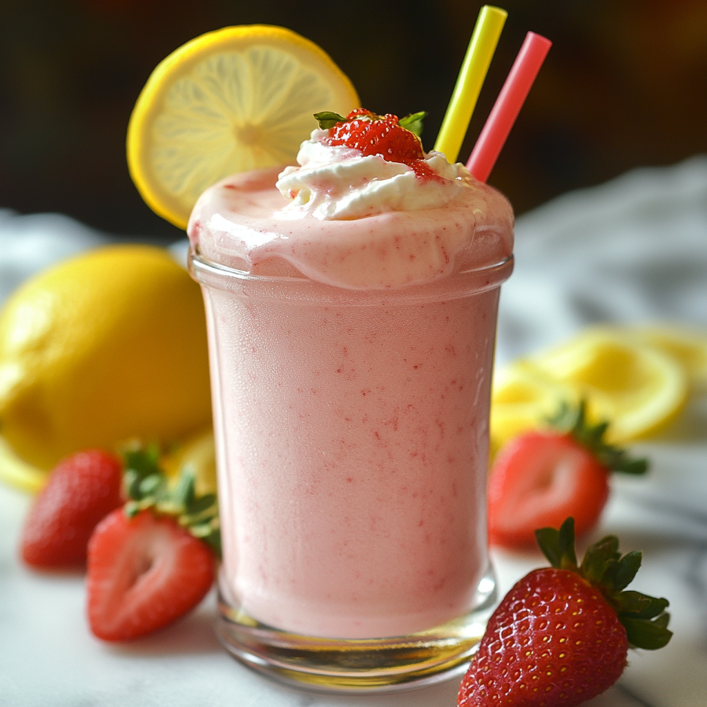 Strawberry Frosted Lemonade is a delightful blend of refreshing flavors, perfect for any occasion. This drink boasts a bright and zesty lemon taste, complemented by the sweetness of strawberries and the creaminess of vanilla ice cream. It’s an ideal choice for summer gatherings, picnics, or simply cooling off on a warm day. The combination of ingredients not only makes it delicious but also visually appealing, making it a standout addition to your drink menu.