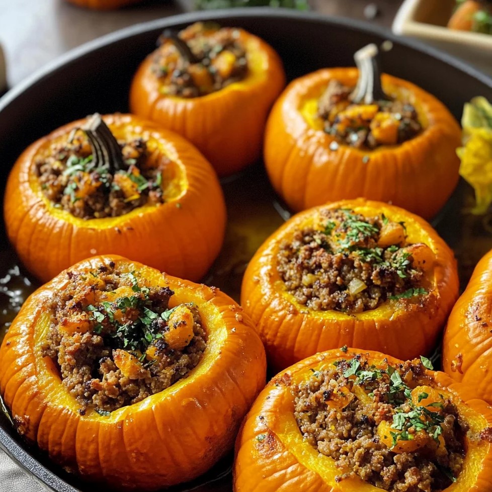 Delight in the flavors of autumn with this Stuffed Mini Pumpkins Recipe. These charming little pumpkins are transformed into a hearty main dish, bursting with savory ground beef and creamy pumpkin puree, seasoned with aromatic herbs. This recipe is not only visually appealing but also provides a nutritious meal perfect for fall gatherings or cozy family dinners. Their festive presentation will bring warmth to any table, making them an ideal choice for celebrations. Packed with wholesome ingredients, these stuffed mini pumpkins are sure to become a favorite in your household.