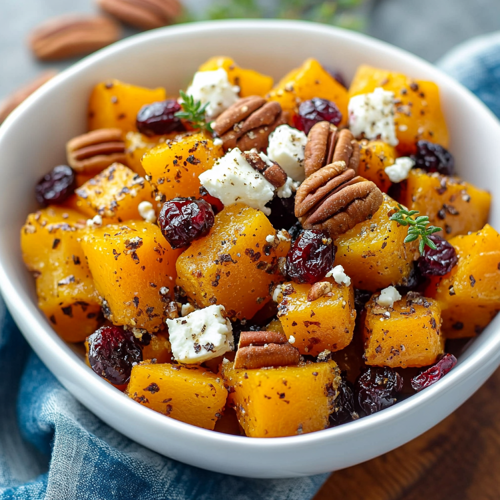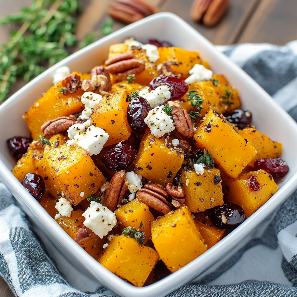 Indulge in the delightful flavors of Sweet and Savory Honey Roasted Butternut Squash with Cranberries, Pecans, and Feta. This visually stunning dish combines the natural sweetness of roasted butternut squash with the tartness of cranberries, the crunch of pecans, and the creaminess of feta cheese. Perfect for holiday gatherings or cozy family dinners, it brings warmth and color to any table. Simple to prepare, this recipe is packed with nutrients and flavor, making it a must-try this fall!