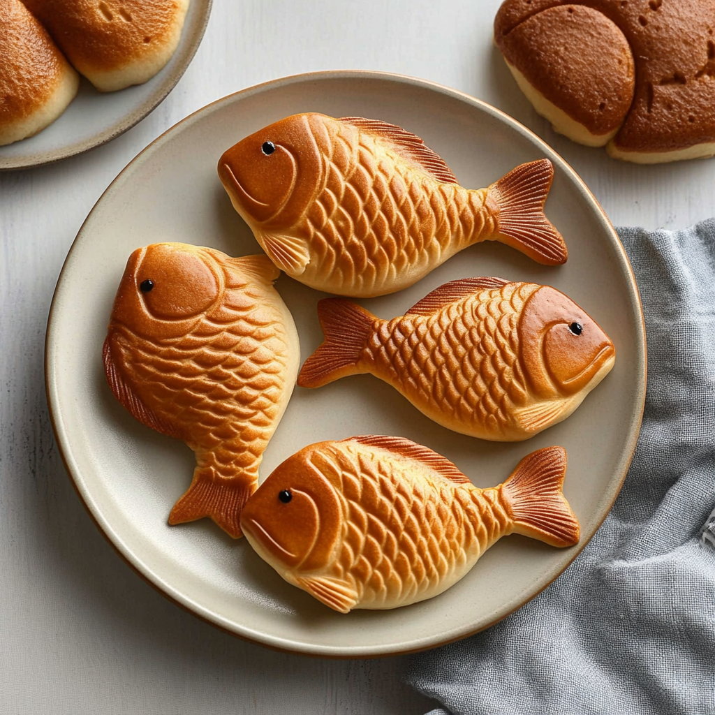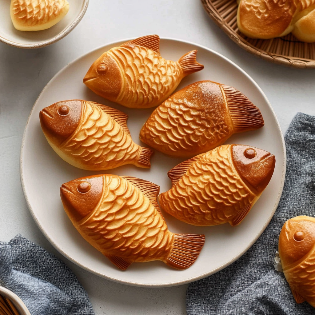 Taiyaki is a Japanese fish-shaped cake filled with sweet fillings like red bean paste or custard, offering a delightful treat that’s perfect for any occasion.
